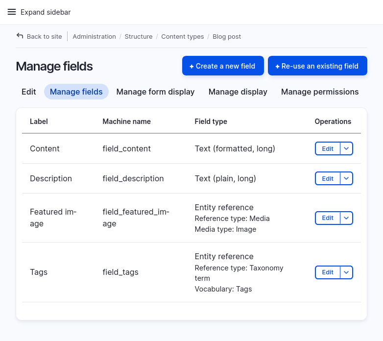 UI to define content types and fields